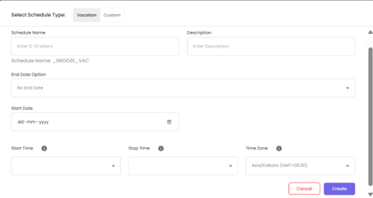 Select Schedule Type - Choose between Vacation or Custom