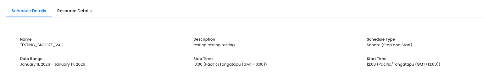 - Deleting a schedule does not impact the current state of associated resources