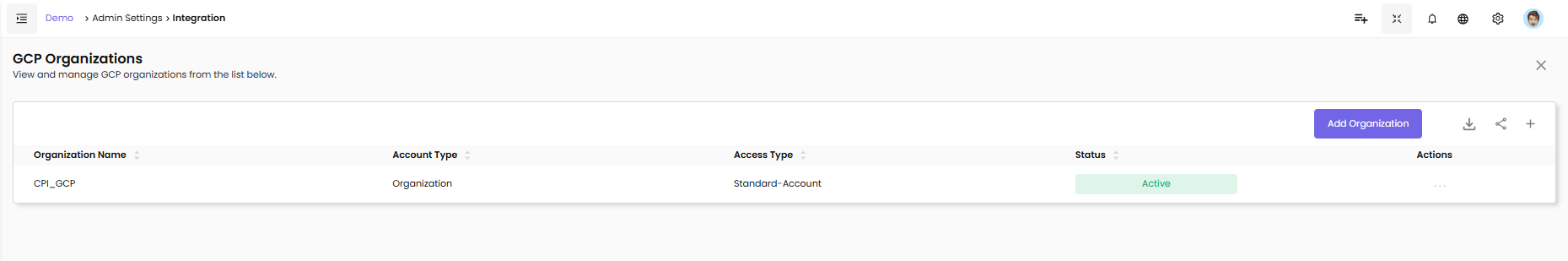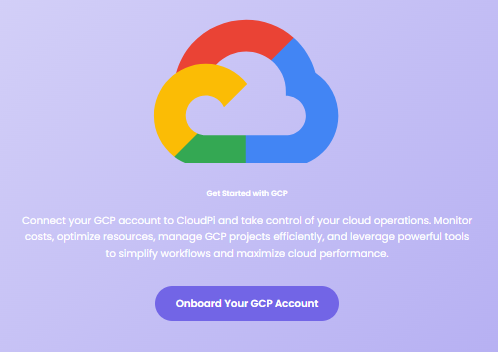 Connect your Google Cloud Platform projects to CloudPi for comprehensive GCP management.