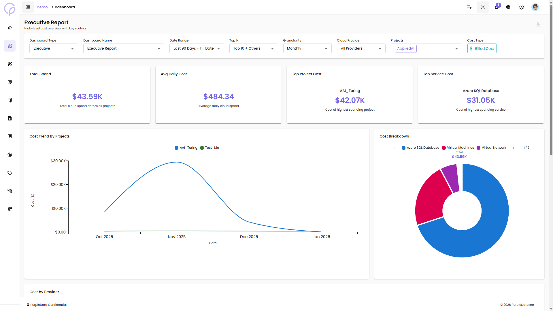 - Cloud Provider - Filter by AWS, Azure, GCP, or view combined data (All Providers)