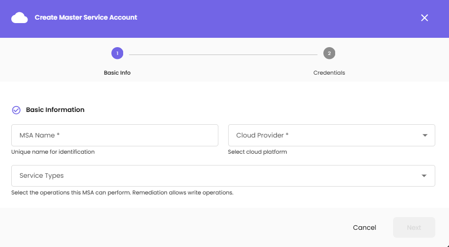 MSA Name - Enter a unique name for identification (e.g., Prod_AWS, Dev_Azure)